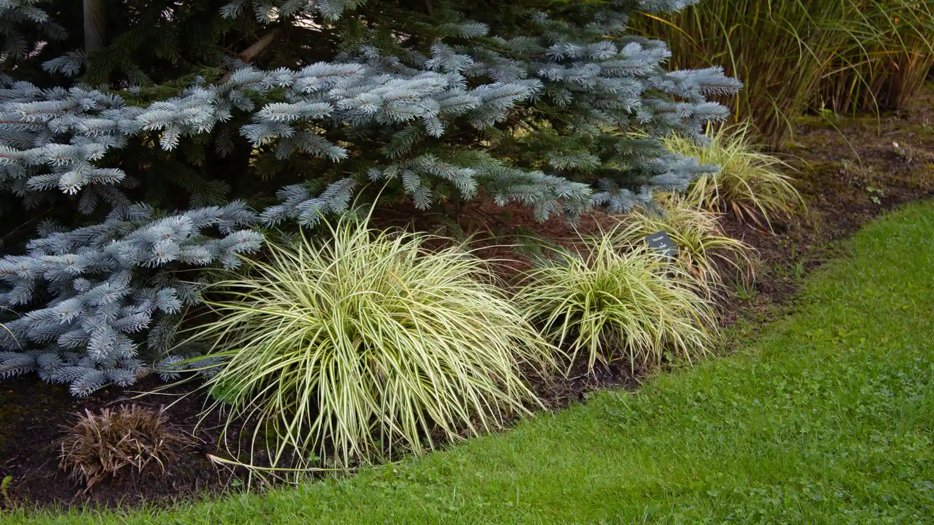 - Carex morrowii ‘Ice Dance’: Eine bewährte, immergrüne Segge mit weiß gerandeten Blättern. Besonders pflegeleicht und ideal als Bodendecker im Halbschatten.