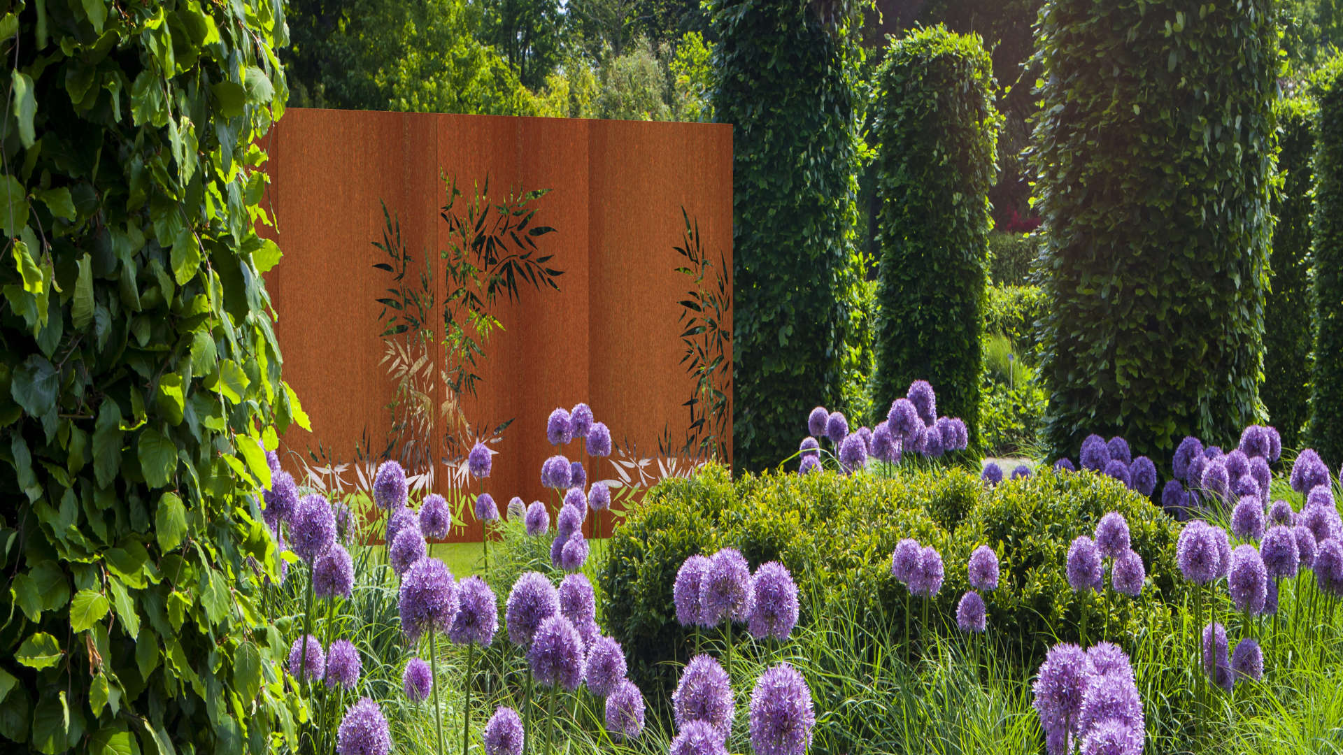 Cortenstahlwände bieten einen warm und natürlich wirkenden Sichtschutz, der wenig pflegebedürftig ist und Ihrem Garten einen künstlerischen Charakter schenkt. Die attraktiven Motive verleihen einen Hauch von Leichtigkeit, indem sie Licht und Luft Durchlass gewähren. Mit Hilfe dieses flexibel einsetzbaren Elements bestehen für Sie unzählige Optionen, Ihr Reich zu einer Oase der Ruhe und Abgeschiedenheit zu gestalten. Ganz gleich ob Sie es als einzeln drapierten Eyecatcher, in malerischer Verbindung mit sanft schwingenden Pflanzen, stimmungsvoll beleuchtet oder abwechselnd mit festen Mauerteilstücken oder Gabionen aufstellen... wegen des relativ geringen Eigengewichts und der leichten Montierfähigkeit sind der Kreativität hier weder schöpferische noch technische Grenzen gesetzt.